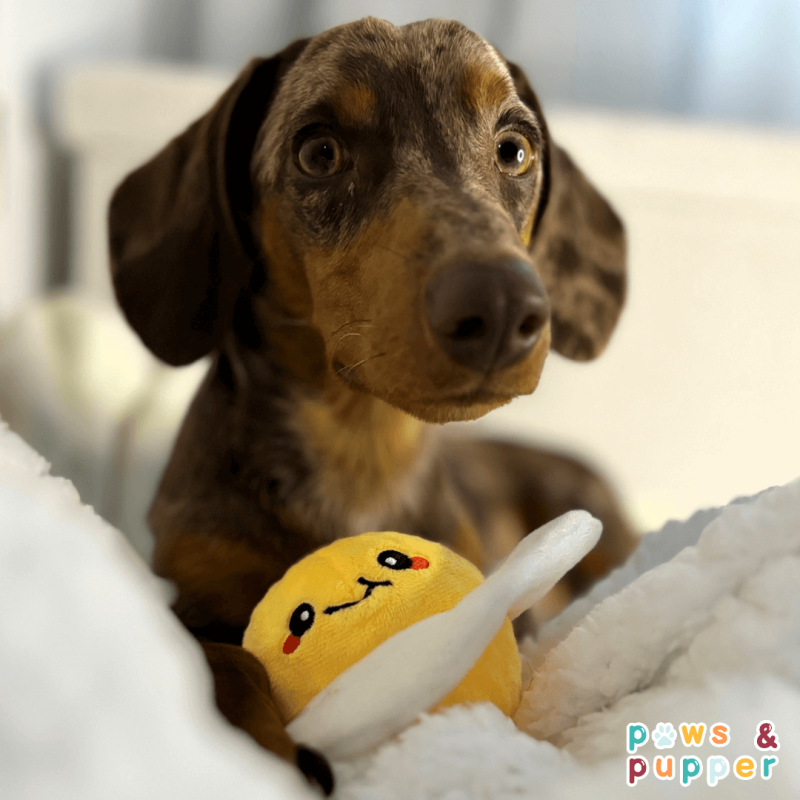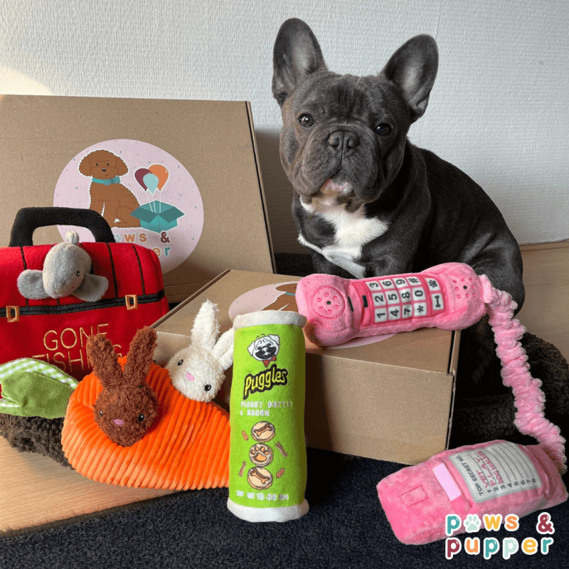 Hi, ik ben Stitch! Ik ben gek op alle leuke speeltjes en heerlijke snacks die bij Paws & Pupper te koop zijn. Mijn grote favoriet is toch wel de roze Pawtalk die ook op deze foto staat. Ik piep er de hele dag vrolijk op los!!