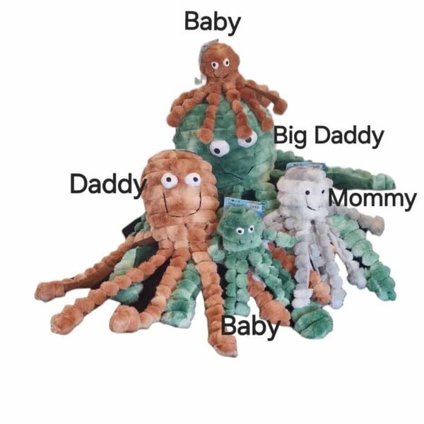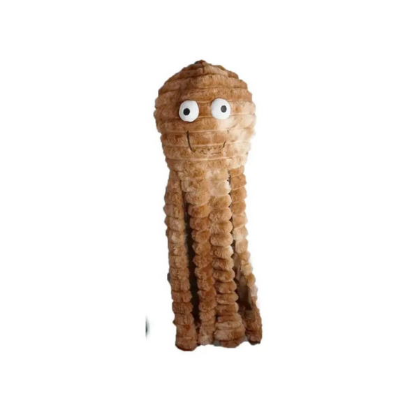 Dit speeltje is voorzien van een pieper in de bovenkant en in de tentakels van knisperpapier. De verschillende geluiden zorgen voor zintuiglijke stimulatie en betrokkenheid. De zachte onderkant maakt het niet alleen geschikt om mee te spelen, maar ook om mee te knuffelen. Met al de verschillende maten is het geschikt voor honden van alle rassen, van klein tot groot.