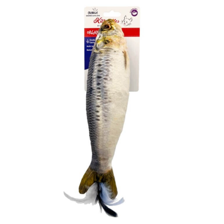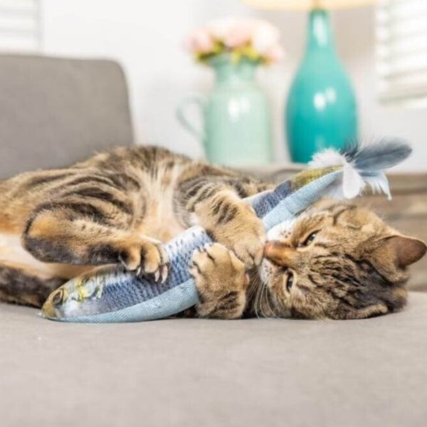 Het fijne aan deze vis is dat hij niet alle kanten op zal spartelen wanneer jouw kat ermee wil spelen en ook geen vies geurtje achter laat als je hem te lang in de woonkamer laat liggen. Het is namelijk geen echte vis, hoe echt deze vis ook lijkt.